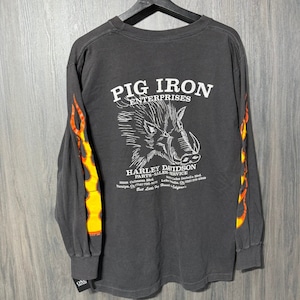 Harley Davison " Pig Irow Arm Fire Print L/S " Fade Tag Fits L 【A11-319】